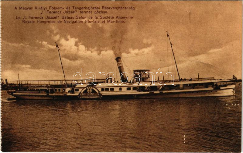 A Magyar Királyi Folyam- és Tengerhajózási Rt. (MFTR) "I. FERENCZ... https://www.darabanth.com/hu/475-Gyorsarveres/475.0/Kepeslapok/Hajo~1500027/A-Magyar-Kiralyi-Folyam-es-Tengerhajozasi-Rt-MFTR-I-FERENCZ-JOZSEF-termes-gozose-goz~II3226605