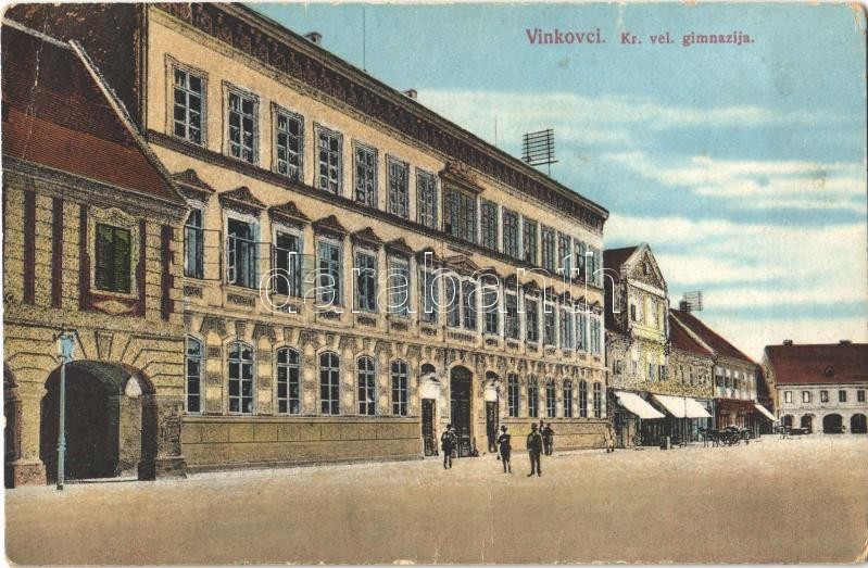 Leírás: Vinkovce, Vinkovci; Kr. vel. gimnazija / gimnázium / grammar school (Rb)