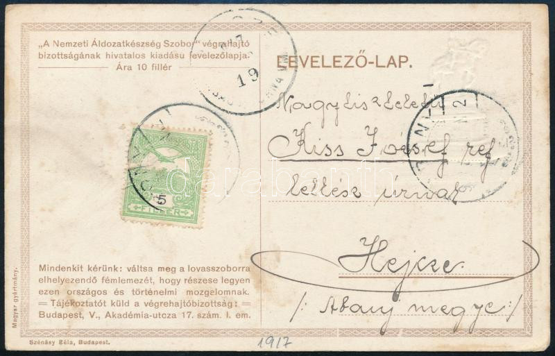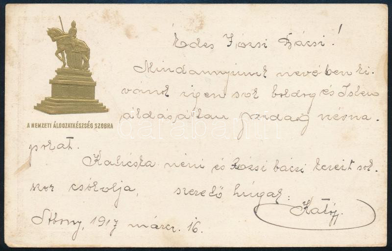 1917 Nemzeti Áldozatkészség Szobor dombornyomott segélylap / WWI Austr... https://www.darabanth.com/hu/475-Gyorsarveres/475.0/Kepeslapok/Katonai~1500036/1917-Nemzeti-Aldozatkeszseg-Szobor-dombornyomott-segelylap-WWI-Austro-Hungarian-KuK-militar~II3224240