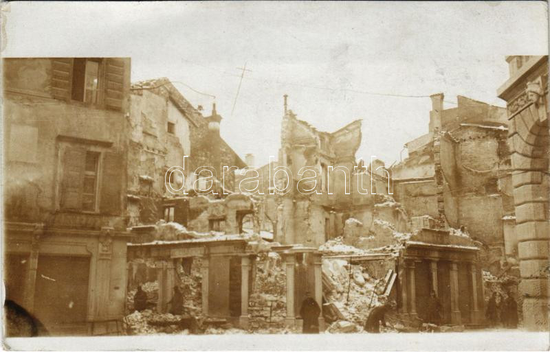 1918 Első világháborús, valószínűleg az olasz fronton készült fénykép egy lerombolt városrészről / WWI Austro-Hungarian K.u.K. military, destroyed part of a city on the Italian front. photo (vágott / cut)