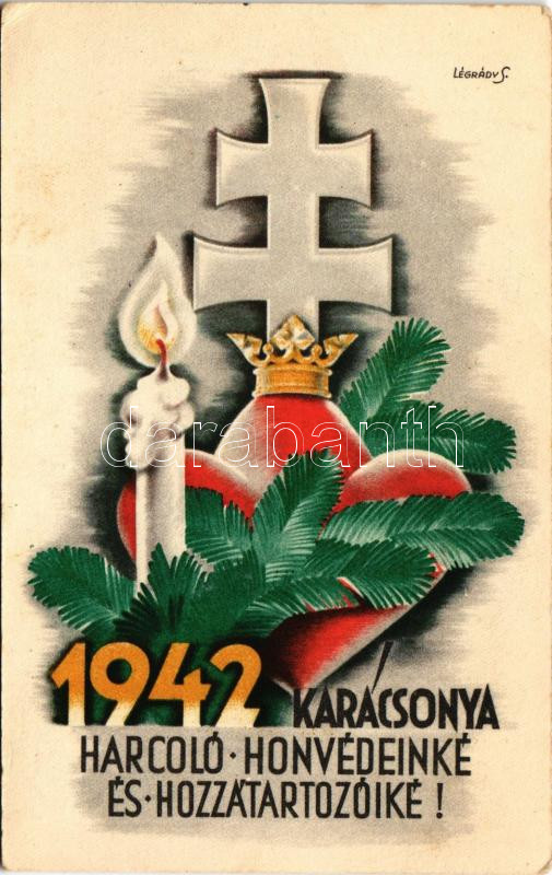1942 Karácsonya Harcoló honvédeinké és hozzátartozóiké! Leventeifjúság honvédkarácsonya / WWII Hungarian military art postcard with Christmas greeting s: Légrády S. (EK)