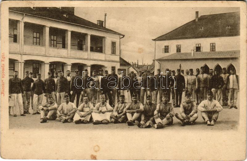 Eger, laktanya udvara K.u.K. katonákkal. Baross nyomda (fl) https://www.darabanth.com/hu/475-Gyorsarveres/475.0/Kepeslapok/Magyarorszag~1500005/Eger-laktanya-udvara-KuK-katonakkal-Baross-nyomda-fl~II3113180