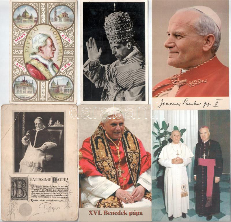 Leírás: 12 db MODERN vallás motívum képeslap: pápák, közte 3 régi lap / 12 modern religion motive postcards: popes, including 3 pre-1945 cards
