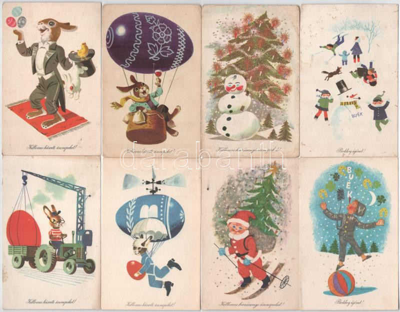 Leírás: 53 db MODERN magyar retro grafikai üdvözlő képeslap. Képzőművészeti Alap / 53 modern Hungarian retro greeting graphic postcards