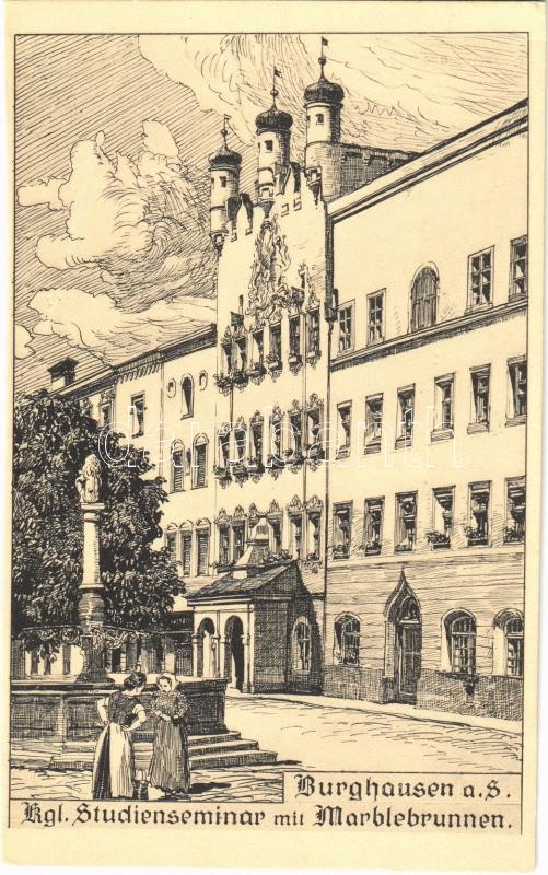 Burghausen, Kgl. Studienseminar mit Marblebrunnen / fountain (fa) https://www.darabanth.com/hu/475-Gyorsarveres/475.0/Kepeslapok/Nemetorszag~1500112/Burghausen-Kgl-Studienseminar-mit-Marblebrunnen-fountain-fa~II2211806