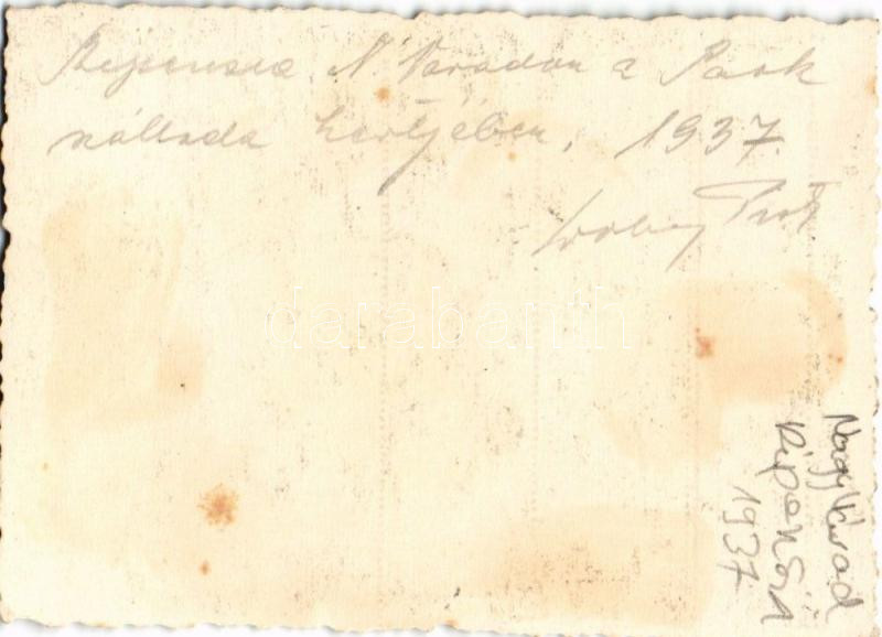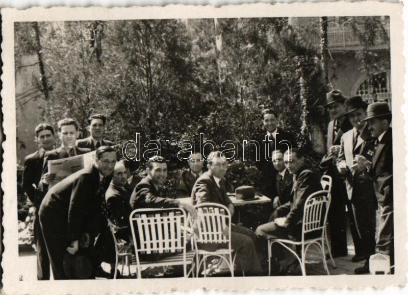 1937 FC RIPENSIA Temesvár labdarúgói Nagyváradon a Park szálloda kertjében, focisták / Romanian football, players of FC Ripensia Timisoara in the garden of Hotel Park in Oradea. photo (8,4 cm x 6 cm)