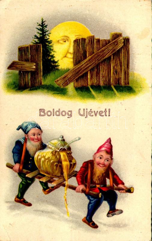 1933 Boldog Újévet / New Year greeting with dwarves. litho (EK) https://www.darabanth.com/hu/475-Gyorsarveres/475.0/Kepeslapok/Udvozlolapok-Unnepek~1500073/1933-Boldog-Ujevet-New-Year-greeting-with-dwarves-litho-EK~II3190772