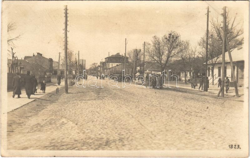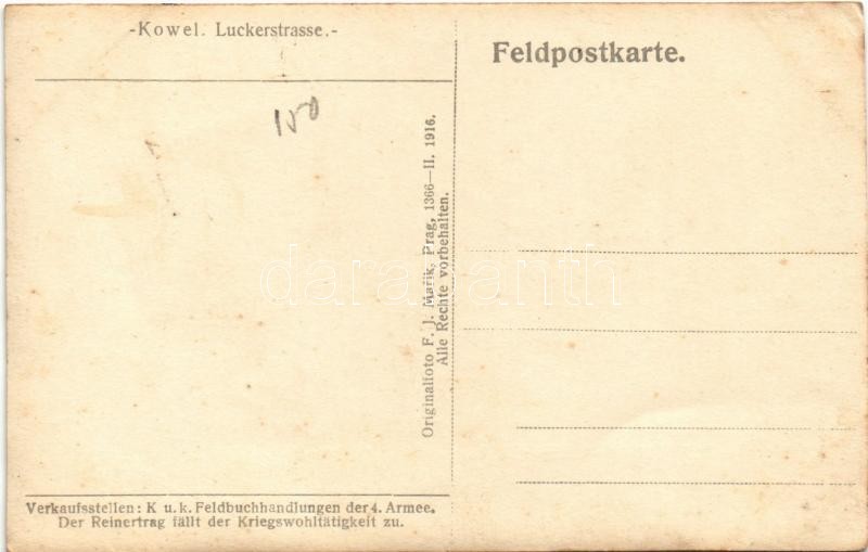 Leírás: Kovel, Kowel; Luckerstrasse, Kaffeehaus, Restauration / WWI street view, café and restaurant, shops, automobile, K.u.K. soldiers. Originalfoto F. J. Marik (EK)