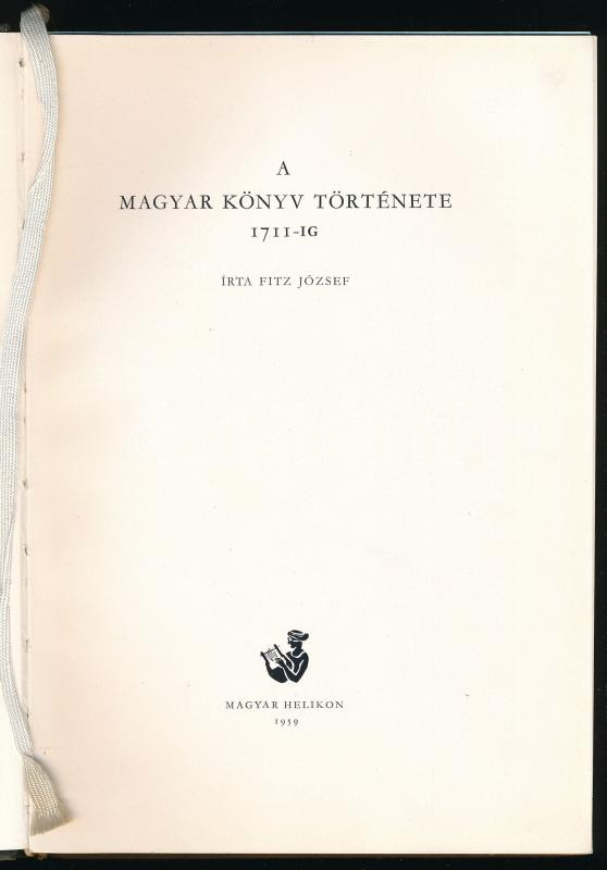 Fitz József: A magyar könyv története 1711-ig. (Fitz-Kéki: A magyar könyv története I. rész). Bp., 1959, Magyar Helikon. Fekete-fehér és színes képekkel illusztrált. Kiadói egészvászon-kötés, fakó gerinccel. Megjelent 5200 példányban.