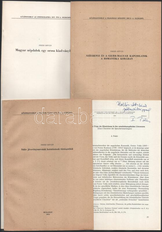 Mindegyik a szerző, Fried István (1934-) irodalomtörténész által Hollós Attila (1933-2023) nyelvész részére DEDIKÁLT példányok!