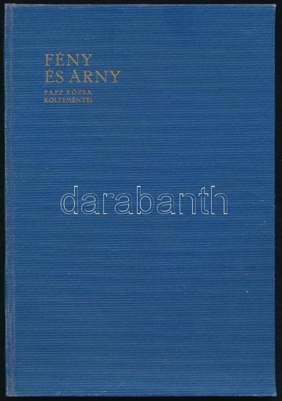 Leírás: Papp Rózsa: Fény és árny. - - költeményei. Bp., 1941, "Pátria", 95+(1) p. Aranyozott egészvászon-kötésben, jó állapotban, a borítón némi kopással.
