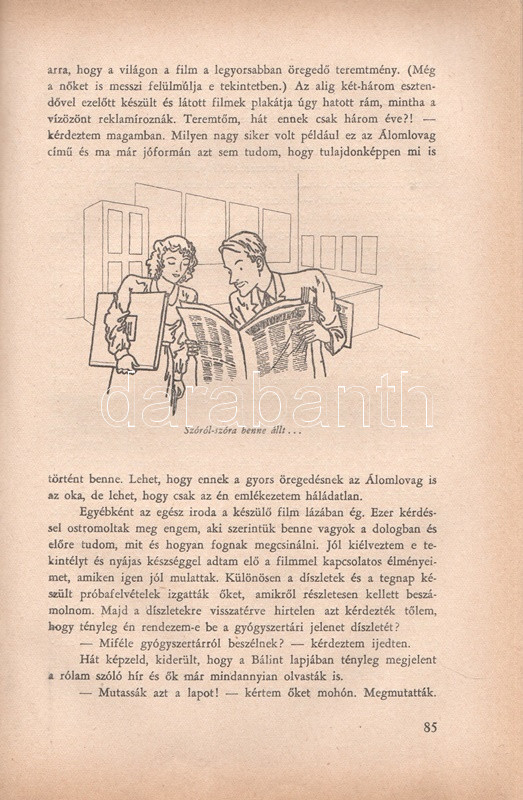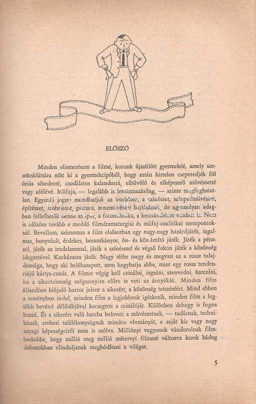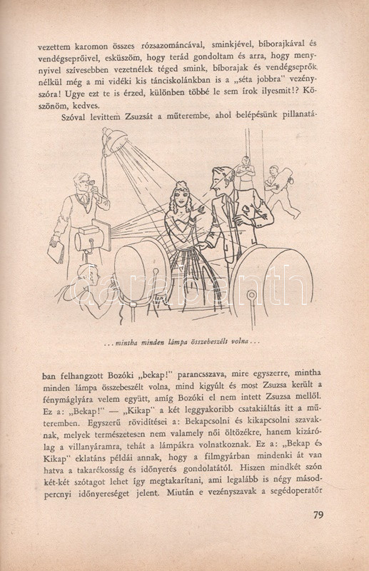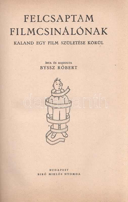 Byssz Róbert (1893-1961) karikaturista, újságíró, a modern magyar sportkarikatúra megteremtője. Oldalszámozáson belül szövegközti grafikákkal gazdagon illusztrált vidám regénye a filmkészítés kulisszái közé vezet. A grafikus szerző erős élményekre támaszkodik: 1941-től 1945-ig a Magyar Filmvállalat sajtófőnöke volt.