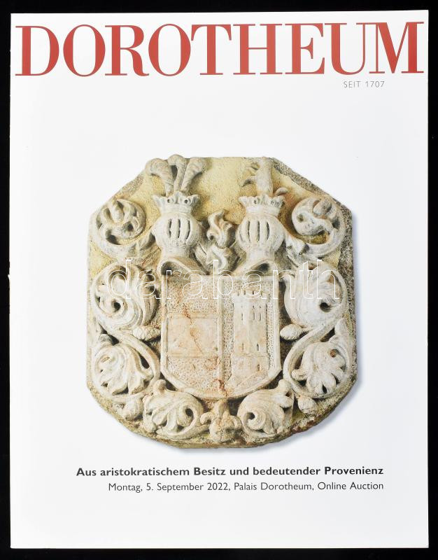 Dorotheum árverési katalógus, nemesség és arisztokrácia tárgyai témába... https://www.darabanth.com/hu/475-Gyorsarveres/475.0/Konyvek/Konyvek-Epiteszet-muveszet~1000021/Dorotheum-arveresi-katalogus-nemesseg-es-arisztokracia-targyai-temaban-2022~II3230260
