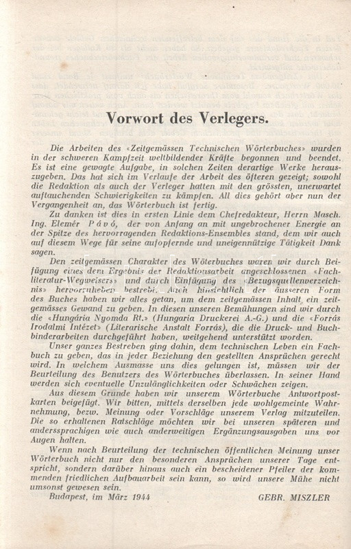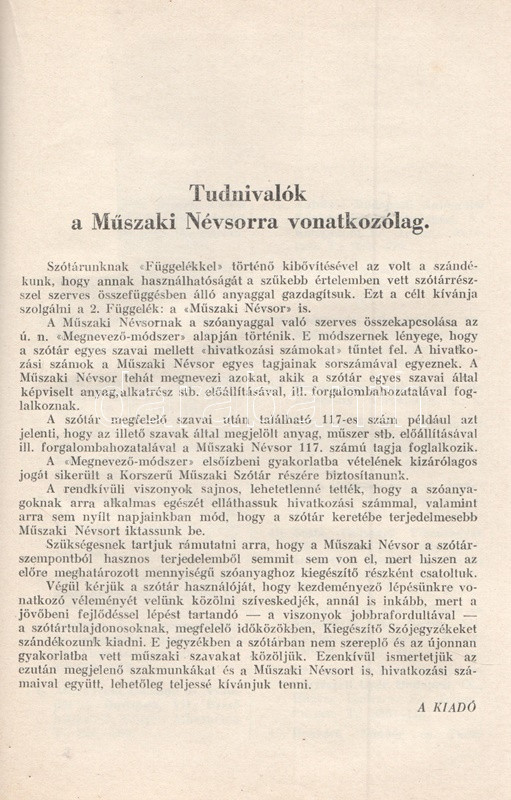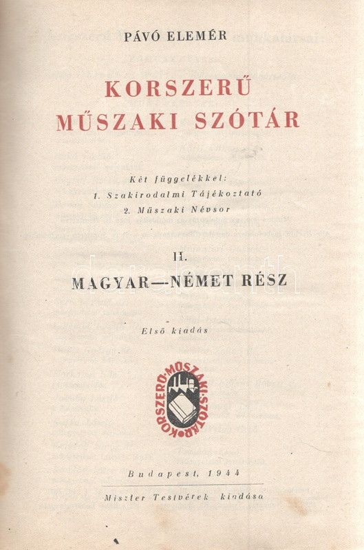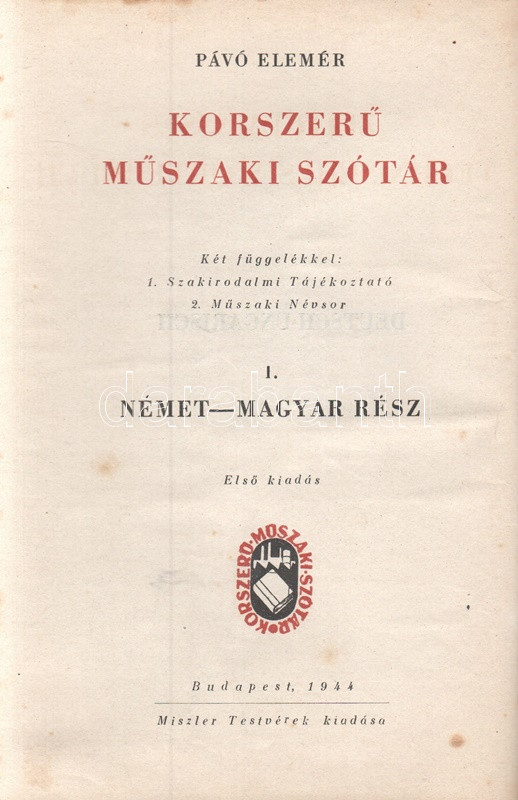 Korszerű műszaki szótár. I-II. I. Német-magyar rész. II. Magyar-német rész. Két függelékkel: 1. Szakirodalmi tájékoztató. 2. Műszaki névsor.
