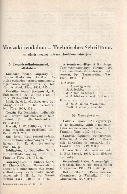 Budapest, 1944. Miszler Testvérek kiadása (Hungária Nyomda Rt.) [4] + 700 p.; [4] + 580 + [2] p. Egyetlen kiadás.