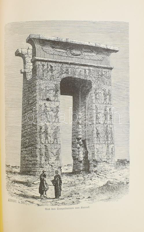 Karl Oppel: Das alte Wunderland der Pyramiden. Geographische, politische und kultur-geschichtliche Bilder aus der Vorzeit, der Periode der Blüte sowie des Verfalls des alten Ägyptens. Leipzig, 1906, Otto Spamyer, 1 t.+VIII+497+15 p.+3 t. Német nyelven. Gazdag képanyaggal illusztrált. Kiadói szecessziós egészvászon-kötés, márványozott lapélekkel, kissé kopott borítóval, kissé sérült gerinccel.