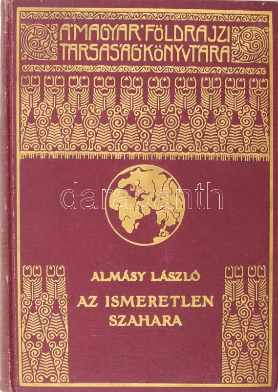 Almásy László (1895-1951): Az ismeretlen Szahara. A Magyar Földrajzi Társaság Könyvtára. Bp., [1935], Franklin-Társulat, 216 p. + 32 (fekete-fehér képek) t. Kiadói dúsan aranyozott egészvászon-kötésben, kopott borítóval.