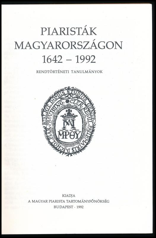 Piaristák Magyarországon 1642-1992. Rendtörténeti tanulmányok. Szerk.: Holl Béla. Bp., 1992, Magyar Piarista Tartományfőnökség. Kiadói papírkötés, a borítón némi kopással.