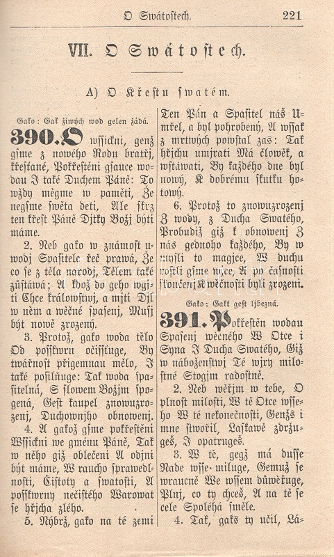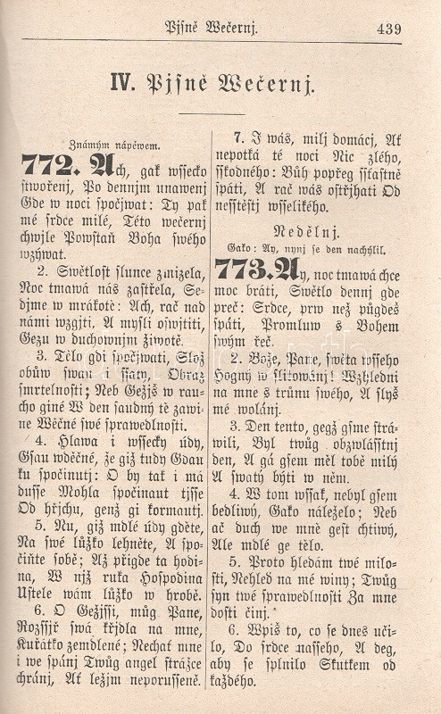 A Pawel Jozeffy tiszamenti és Jan Seberini bányai evangélikus püspökök által szerkesztett szlovák nyelvű evangélikus énekes- és imádságoskönyvünk a közösségi és egyéni ájtatosság alkalmaira készült. Első kiadása 1842-ben, Pesten jelent meg. Két hasábos szövegoldalakon gót betűs írásképpel. Újrakezdődő lapszámozás szerint imádságok különféle alkalmakra.