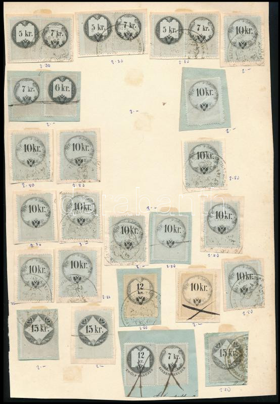 Leírás: 1858/63.illetékbélyegek fogazatváltozat összeállítás
