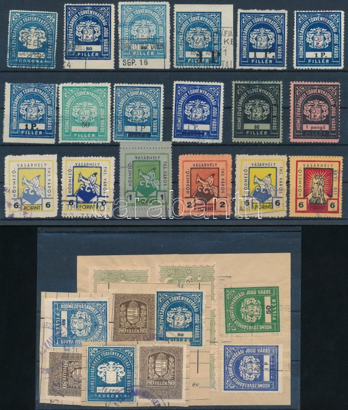 Leírás: 23 db hódmezővásárhelyi okmánybélyeg, 2 db stecklapon