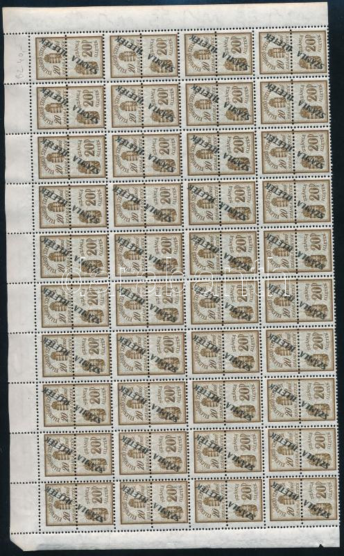 Leírás: Számlailleték bélyeg 1945 20P 40-es ívdarab (60.000)