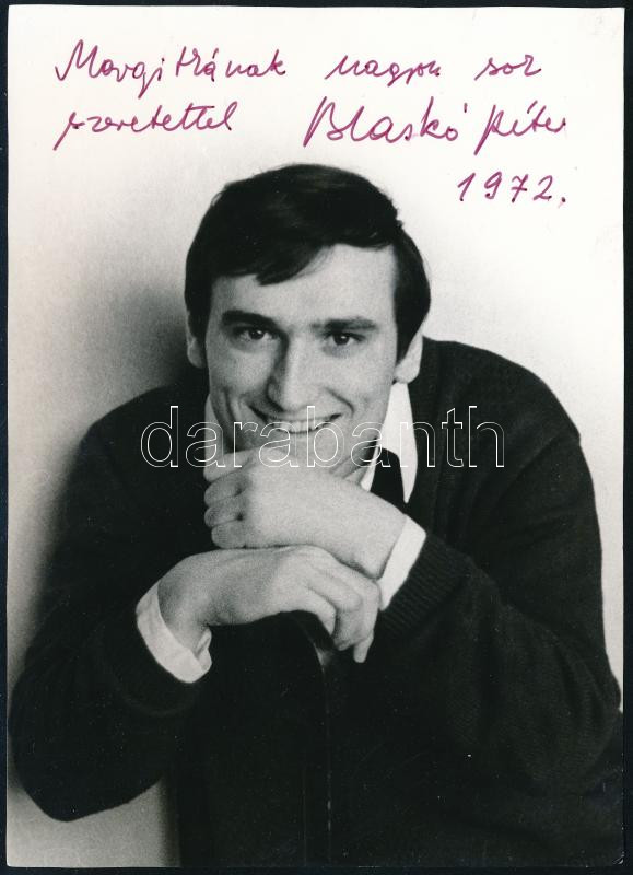 Leírás: 1972 Blaskó Péter (1948-) színész autográf dedikációja őt ábrázoló fotón