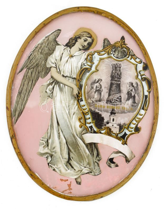1899 Ovális üvegezett szentkép, 12,5x10 cm