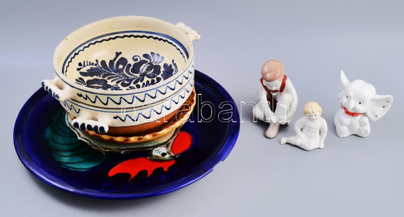 Leírás: 8 darabos kerámia és porcelán tétel, vegyes állapotban és méretben.
