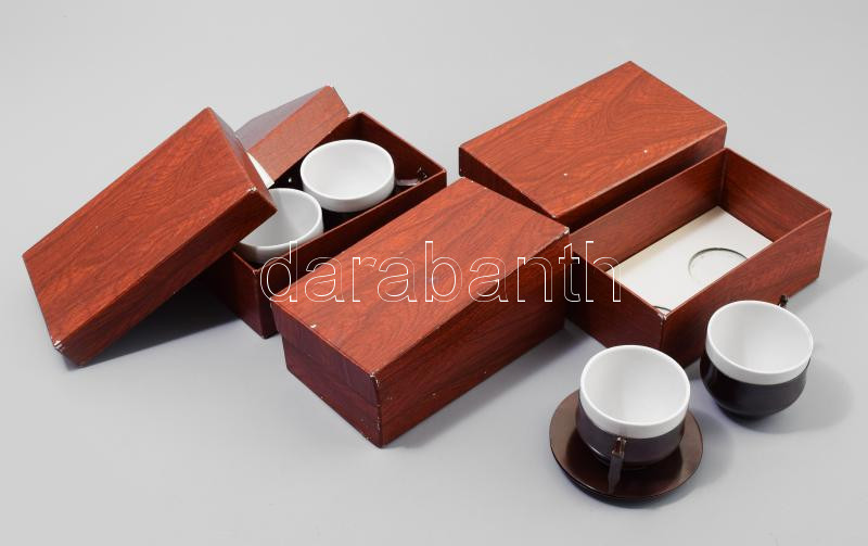 Leírás: 8 db iparművész mokkás csésze. Réz és porcelán betéttel, eredeti dobozában