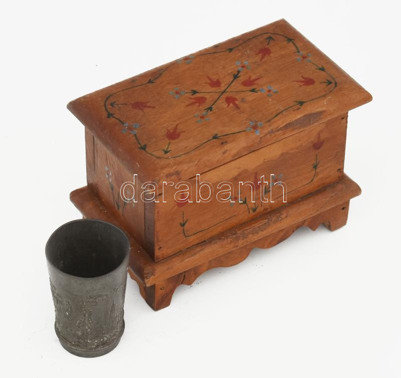 Leírás: Antik bécsi ón pohár m: 6 cm, ékszeres dobozban, 12x7 cm