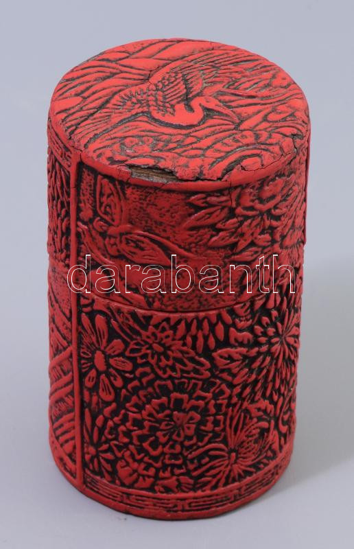 Leírás: Antik kínai fémdoboz, jelzett, kopással, m: 13 cm