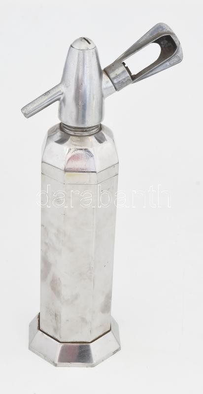 Leírás: Art deco szódásszifon. Jelzés nélkül, vastag anyagból készült, nyolc oldalra tagolódó fém, m: 33 cm