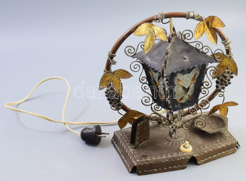 Borászati témájú asztali lámpa, gyufatartó és hamuzó résszel, m: 26 cm https://www.darabanth.com/hu/475-Gyorsarveres/475.0/Mutargy-papirregiseg-egyeb/Bolhapiac~500015/Boraszati-temaju-asztali-lampa-gyufatarto-es-hamuzo-resszel-m-26-cm~II3226421