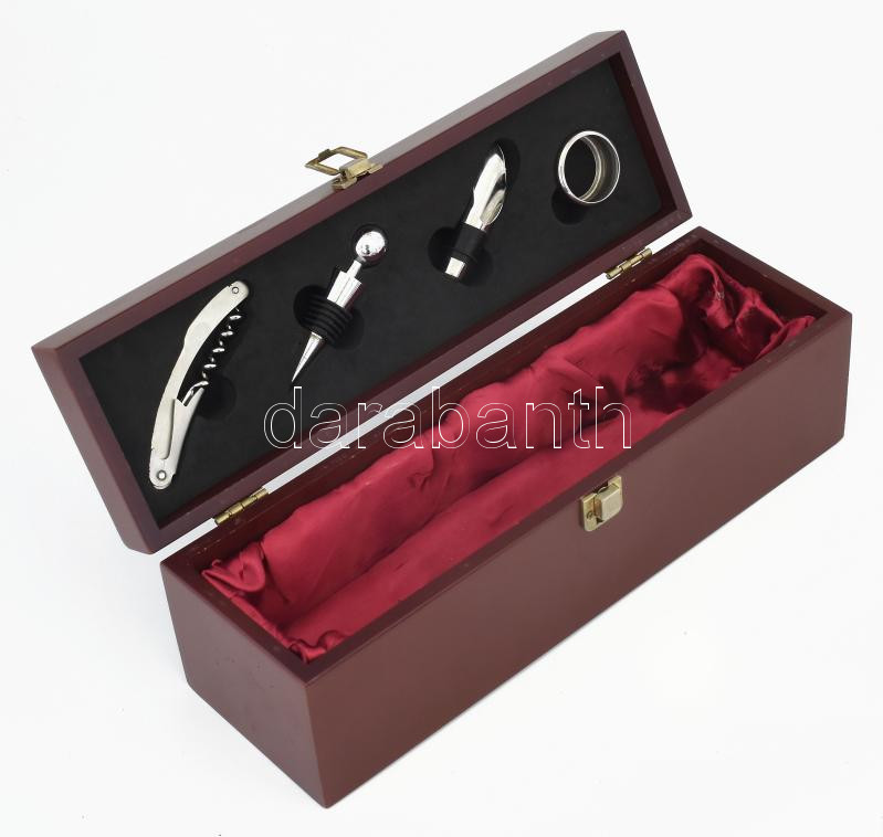 Leírás: Borhordozó, borszervírozó szettel, h: 36 cm
