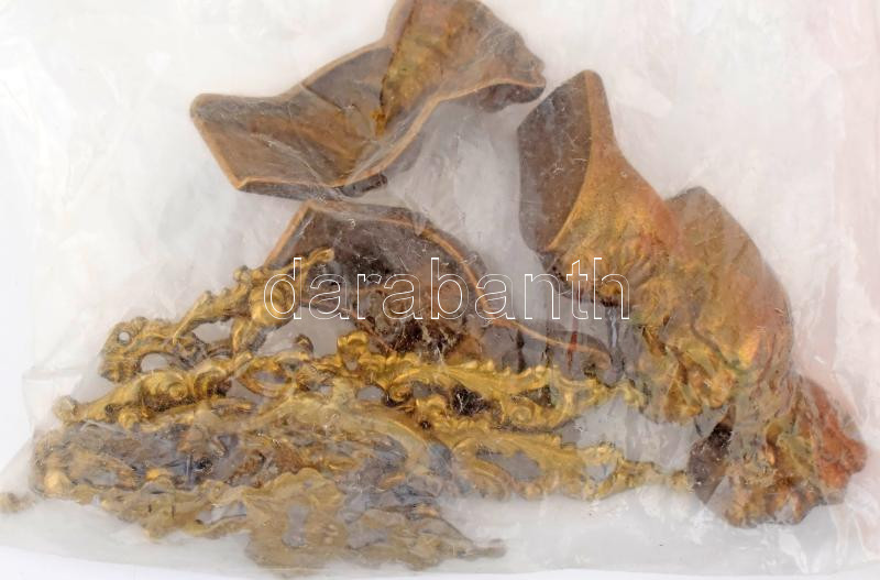 Leírás: Egy doboznyi régi bútorveret. réz fiókhúzók, gombok, zárcímek, stb