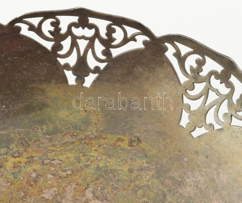 Ezüstözött talpas kínáló, d: 22 cm, m: 14 cm