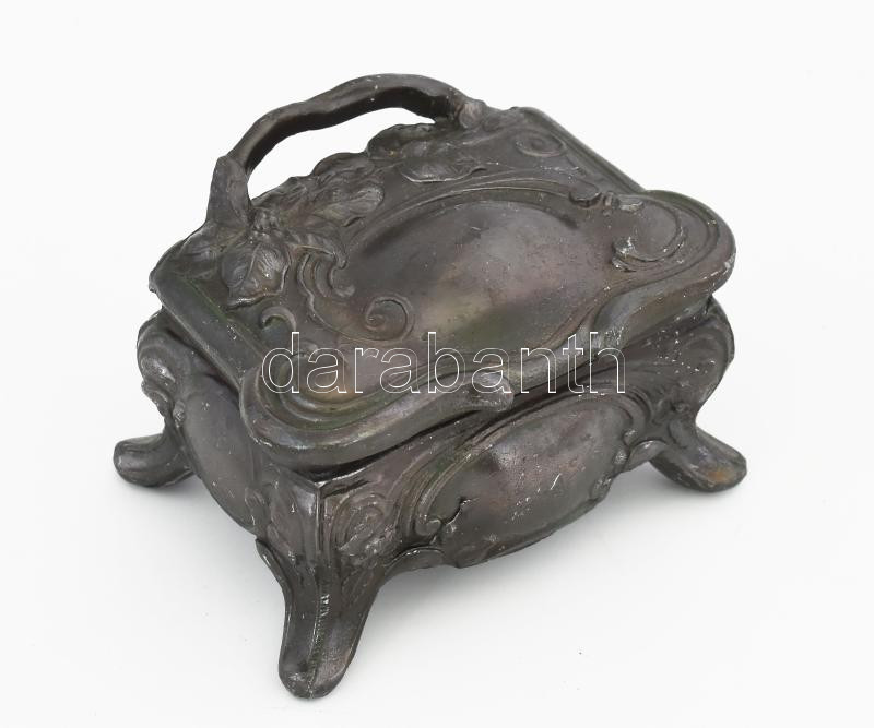 Leírás: Ón ékszeres doboz, 9x6x6 cm