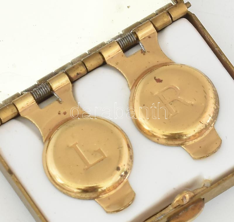 Leírás: Zománcozott sáragaréz kontaktlencse tartó. 1x4x3 cm