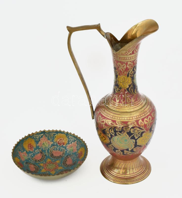 Zománcozott tálka d: 11,5 cm és váza m: 24 cm