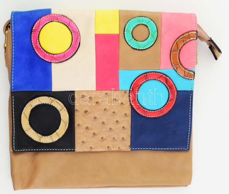 Leírás: Glamour színes női válltáska, varrott műbőr, nem használt, újszerű, 30x30 cm