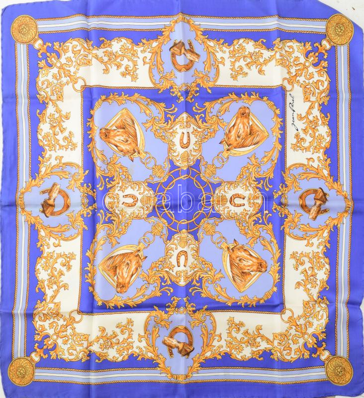 Lovas mintás, kék-fehér-arany színű kendő, kézzel szegett, kb. 74x74 c... https://www.darabanth.com/hu/475-Gyorsarveres/475.0/Mutargy-papirregiseg-egyeb/Design-divat~500013/Lovas-mintas-kek-feher-arany-szinu-kendo-kezzel-szegett-kb-74x74-cm~II3224366