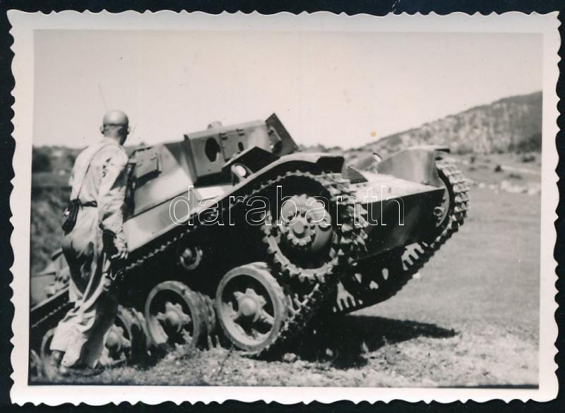 Leírás: 1938 A magyar fejlesztésű Toldi harckocsi tereppróbán, fotó, szép állapotban, 6×8,5 cm