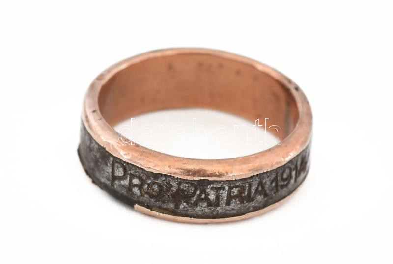 I. világháborús 8 K arany szélű Pro Patria feliratos gyűrű. https://www.darabanth.com/hu/475-Gyorsarveres/475.0/Mutargy-papirregiseg-egyeb/Militaria~1000008/I-vilaghaborus-8-K-arany-szelu-Pro-Patria-feliratos-gyuru~II3226790