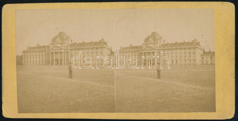Leírás: cca 1880 Francia katonai iskola sztereófotója, 8,5×17 cm