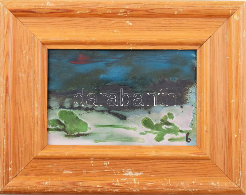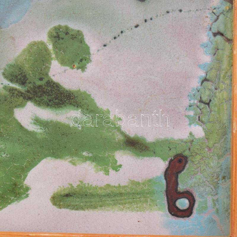 Leírás: Azonosítatlan jelzéssel: Zöldes táj. Tűzzománc, fa keretben 17x11 cm