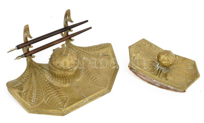 Leírás: Íróasztali tolltartó és itatós tapper készlet. Réz, levél mintás, szecessziós 26 cm