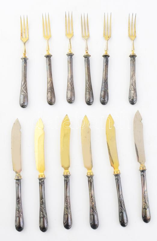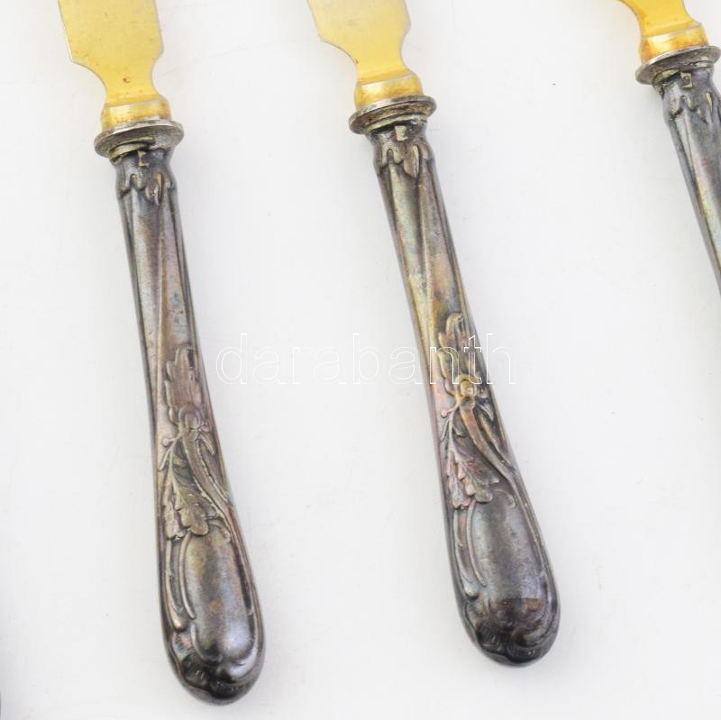 Süteményes villa és kés készlet. Ezüstözött, aranyozott fém 17 cm https://www.darabanth.com/hu/475-Gyorsarveres/475.0/Mutargy-papirregiseg-egyeb/Mutargyak-antikvitas~500009/Sutemenyes-villa-es-kes-keszlet-Ezustozott-aranyozott-fem-17-cm~II3210765