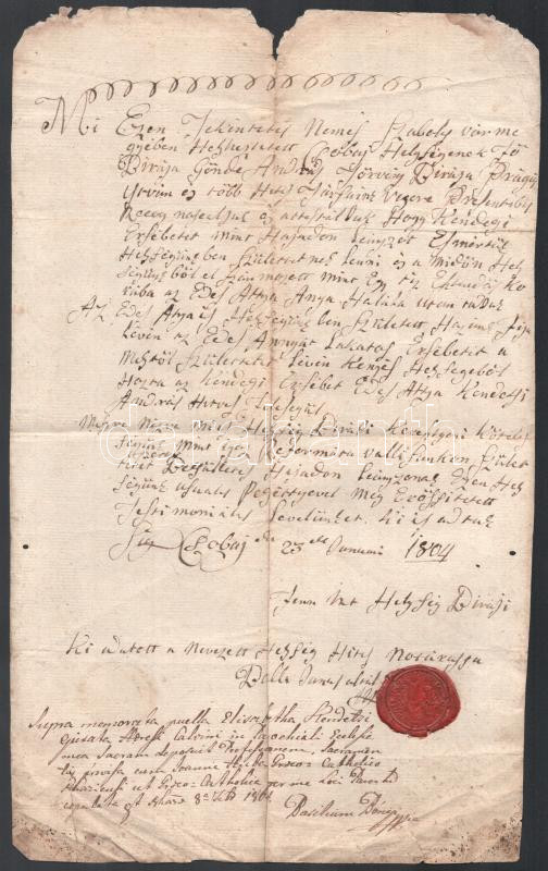 1804. június 23. Csobaj, A helység főbírája, Gönde András magyar nyelvű elismervénye a hajadon Kendegi Erzsébet részére, hogy Csobajon született. Az iratot hitelesítette a főbíró és a jegyző Csobaj tulipános pecsétjével.