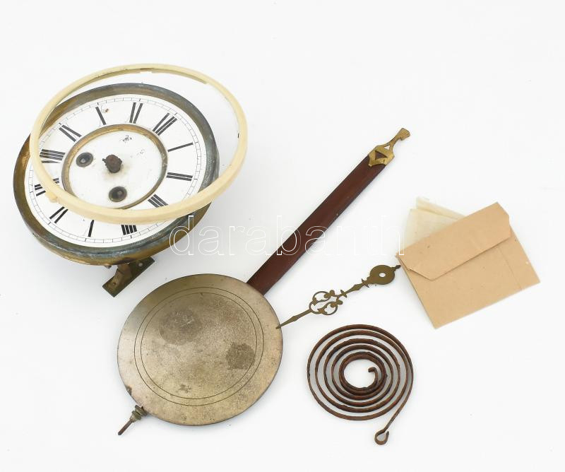 Leírás: Felesütős óraszerkezet és néhány óra alkatrész, javításra